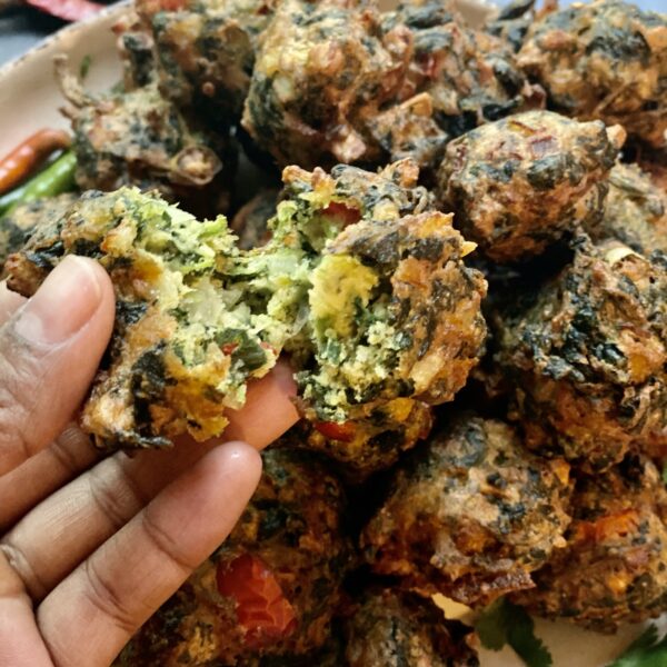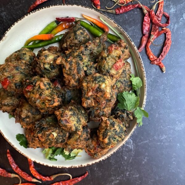 Every family member in our extended family has a specialty. They may not know it but they do. I know who to go to when I am craving something whether it’s achar, curries, chai, sweets or in this case Spicy Spinach Fritters known as Bhajia. My Mausi is the go-to person for Bhajia. She makes this recipe so fast I feel like she always has a batch ready to-go. One minute we are doing a quick visit to her house, the next we are eating Bhajia. It just happens like that. She recently took the time to show me how she makes it. If you are looking for a simple and unique Bhajia recipe this is it.