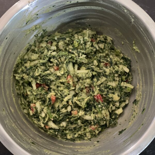 This five (5) ingredient savory & spicy spinach fritter is a crowd pleaser served hot or cold.